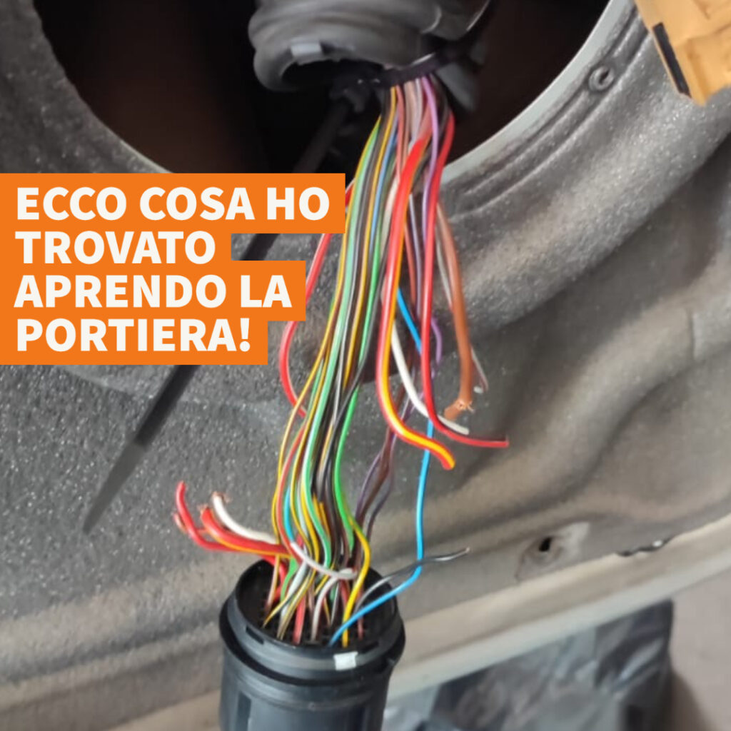 Come solito ho indagato per scoprire che la guarnizione presente nella portiera contenente i cavi dell’impianto elettrico era rotta e alcuni fili tranciati.